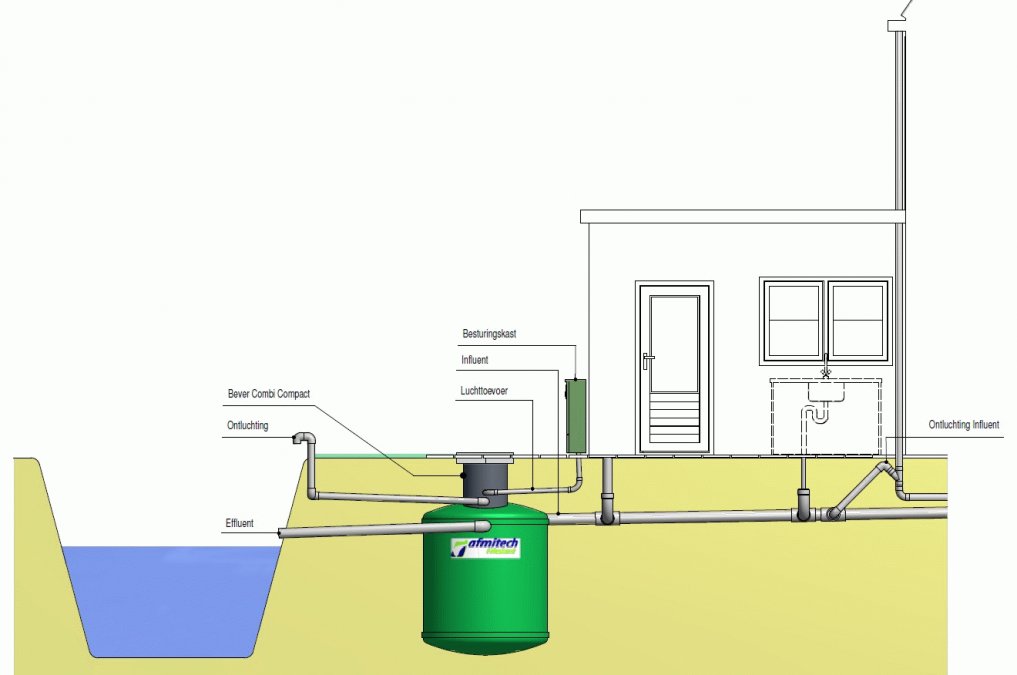 De afvalwaterzuivering (IBA) bestaat uit slechts één vormvaste lichtgewicht GVK (Glasvezel Versterkt Kunststof) tank. Een alternatief is de betonnen uitvoering van de afvalwaterzuivering (IBA). De IBA is eenvoudig aan te sluiten op de woning. Het zwarte en grijze afvalwater wordt dus vanuit de woning rechtstreeks op de Bever Combi Compact BCC (IBA) aangesloten.Omdat de zuivering bestaat uit slechts één kleine tank, is de plaatsing eenvoudig en snel uit te voeren. De afvalwaterzuivering is zeer onderhoudsvriendelijk. Verder is er geen voorbehandeling nodig is of toevoeging van chemicaliën. Tenslotte is de afbraak van de aanwezige afvalstoffen in het water erg hoog.